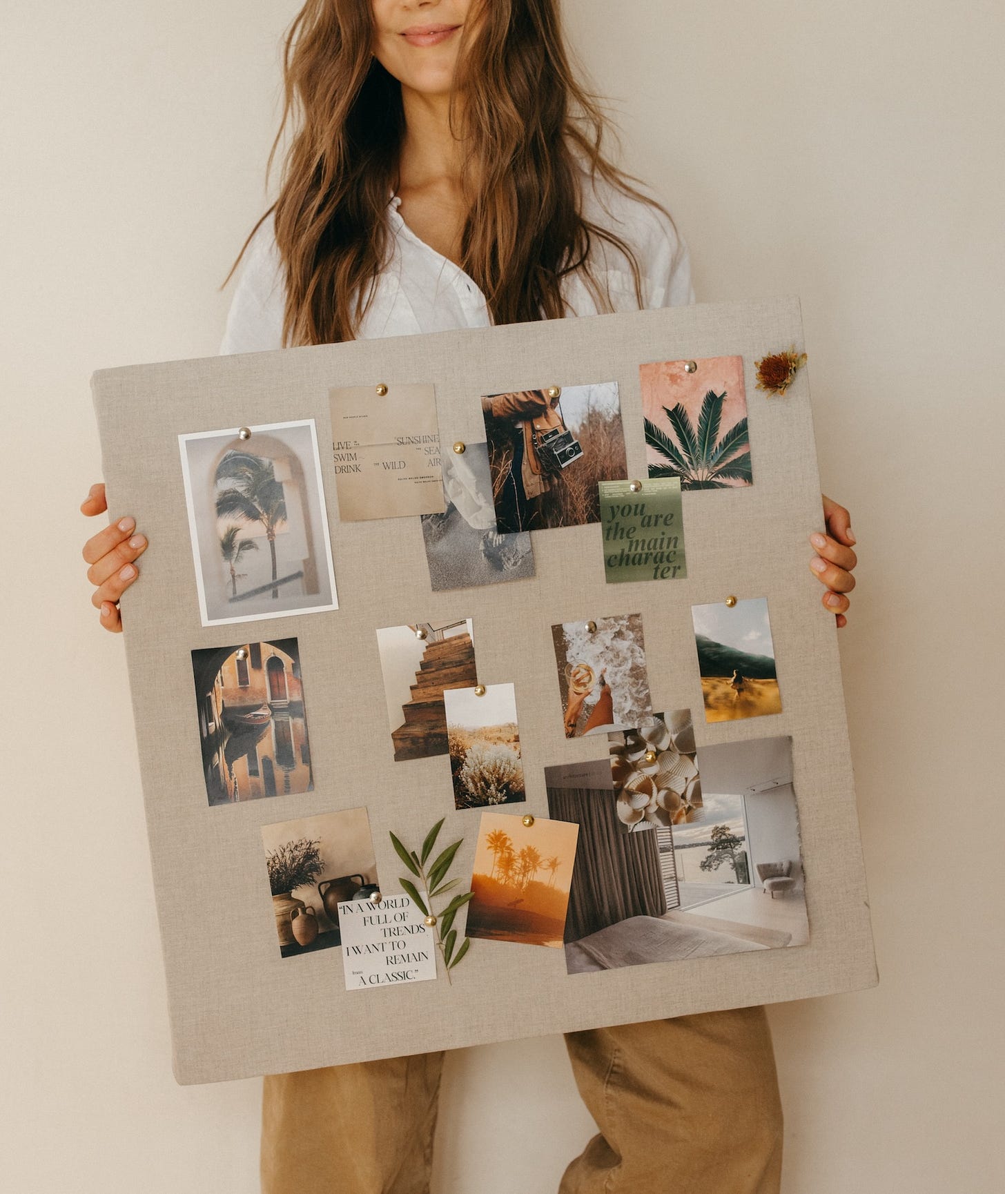 Then, arrange it however you’re feeling! Some years, my board is neat and grid-like. Other years, it’s a messier, layered collage. There’s no right way, just trust your instincts and know that you can always change it! Your board is ever-evolving, which is what makes it dynamic and fun.